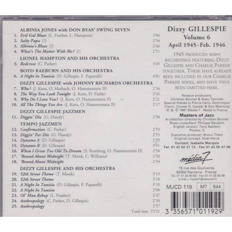 GILLESPIE DIZZY - VOL 6 1945 1946