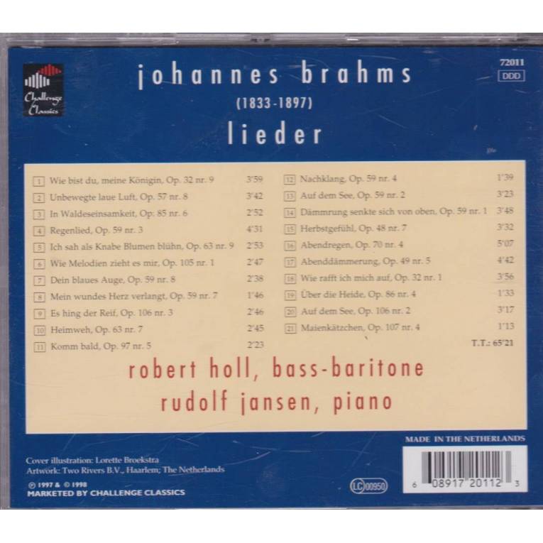 HOLL ROBERT - RUDOLF JANSEN - BRAHMS - LIEDER