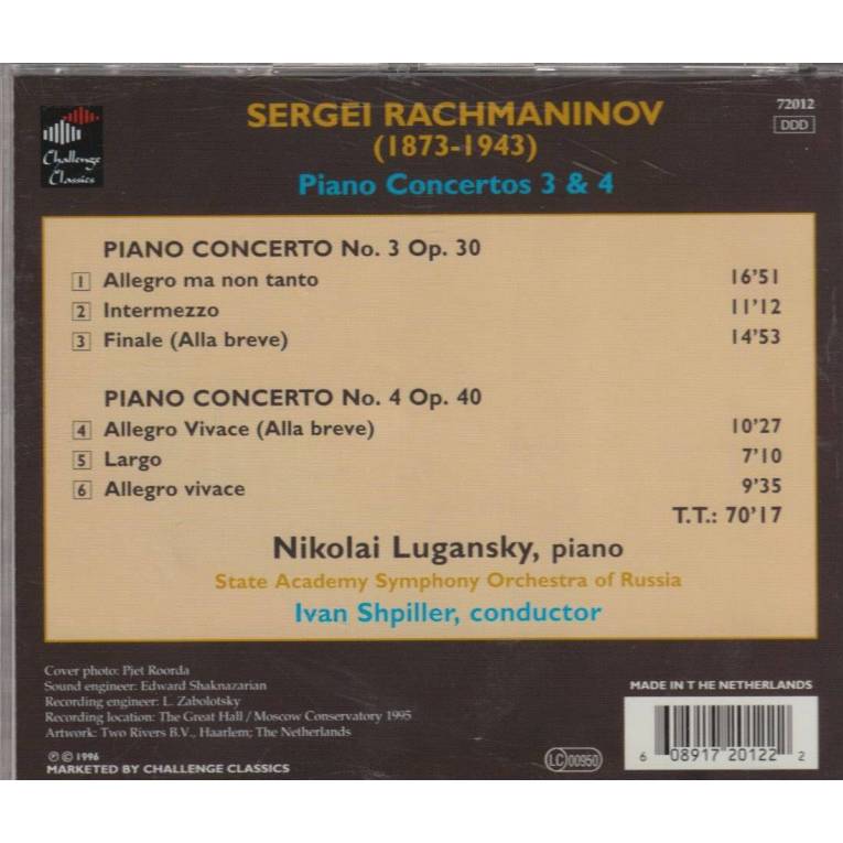 LUGANSKY NIKOLAI - RACHMANINOV PIANO CONCERTOS 3&4
