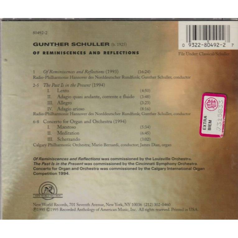 SCHULLER GUNTHER - OF REMINESCENCE AND REFLECTIONS