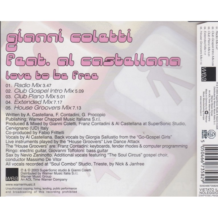 COLETTI GIANNI FEAT AL CASTELLANA - LOVE TO BE FREE 5 MIXES